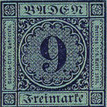 - Description: Among the most valuable Baden stamps, the rose-coloured 9 Kreuzer is rare and highly coveted in unused form.